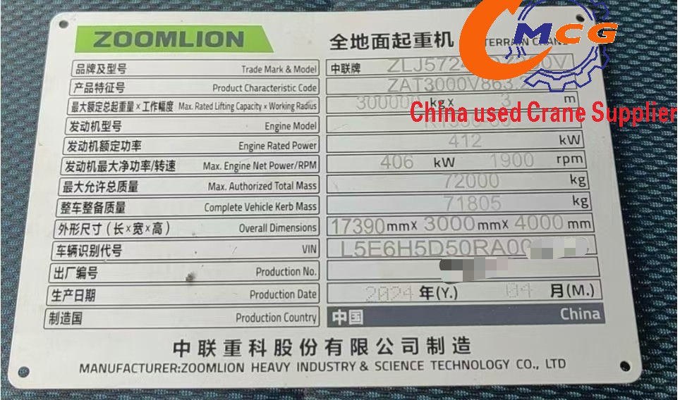 | Capacidad máxima de elevación | 300ton | contrapeso | 100ton |