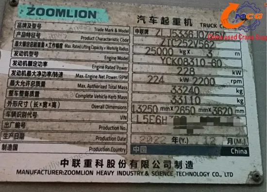 | modelo | ZTC252V | Pluma voladora | 8.5 metros |
