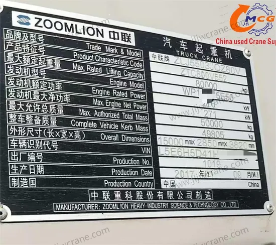 | modelo | ZTC800V5 | Pluma voladora | 17.5 metros |